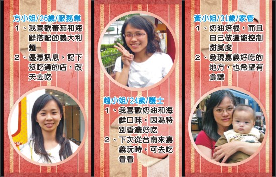 Pasta是義大利麵的統稱,傳說是元朝時,馬可波羅從中國帶麵條回歐洲後,開始流行的一種食物,最後傳到了美國。常見的白醬、紅醬、青醬、黑醬,是運用天然蔬果做成,可別誤以為裡頭加了什麼色素喔!礙於版面有限,咱們先來看看嘉義哪... 記者╱王薏茹微笑報導 |