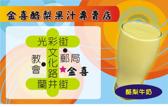 店內果汁不添加香料,以新鮮水果依一定比例調配而成。除風味絕佳的綜合果汁,石蓮花蜜汁也深受顧客喜愛。將阿里山石蓮花搭配獨家配方現點現榨,滋味順口不澀,還能養肝、降火氣喔!