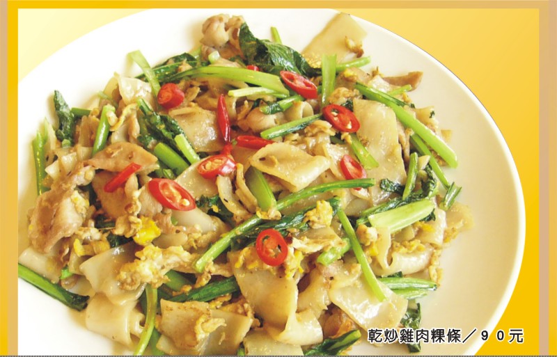 除了道地越南綜合河粉,乾炒雞肉粿條也令人喜愛。Q軟粿條,搭上炒蛋、蒜頭、特調醬油、肉片,滋味香濃不油膩。